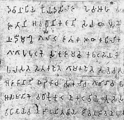 bha, East face, PE 1, Zeile 3, Zeichen 18: dieses bha hat hier nur zufällig eine Form, die dieses Zeichen erst etwa 150 Jahre später annimmt, wo die "Stuhllehne" und das rechte Stuhlbein in einem Strich geschrieben werden.