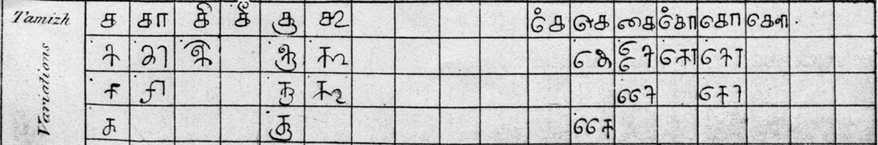 Scanvorlage : Harkness, Henry: Ancient and Modern Alphabets of the Popular Hindu Languages of the Southern Peninsula of India. London: 1837.