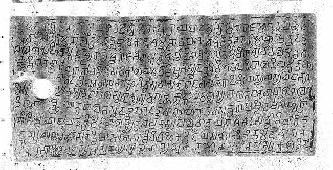 Laut Hultzsch (1909-10: 104, Fn 1.) ist das erste Wort in Zeile 31, salagesahitaṃ , eine spätere Ergänzung.