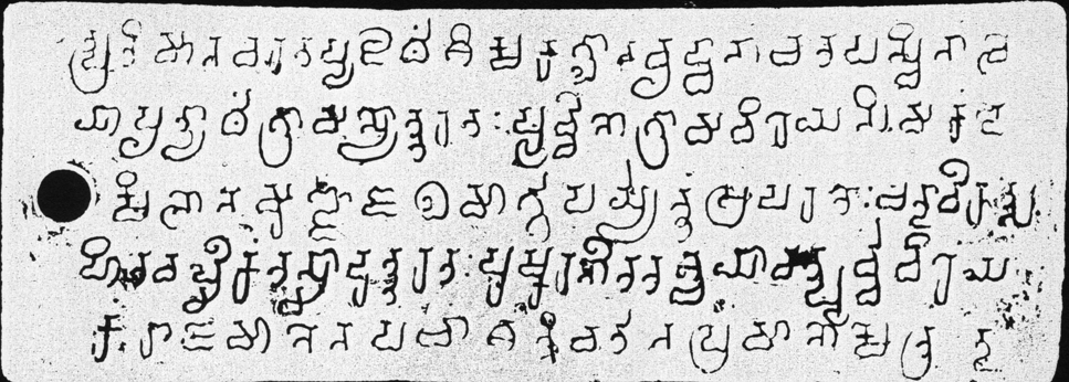 Spiralkringel : Dieser Spiralkringel beendet die Inschrift.ṇo in ° gaṇo° , Zeile 1: Zeichen rekonstruiert.
