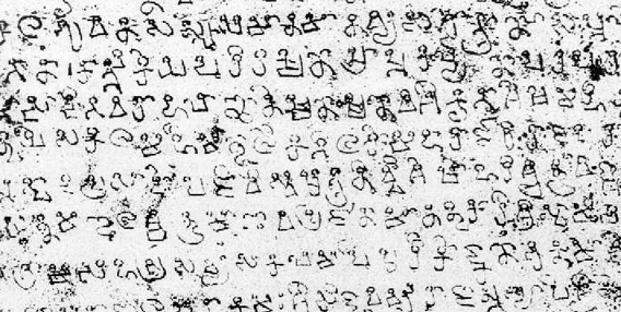Die akṣaras sind mit kleinen Kreisen versehen, im Gegensatz zu den "boxheaded"