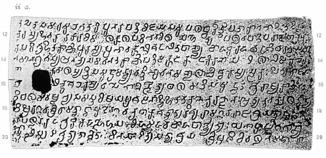 ®a: Die hier vorliegende Form dieses Zeichen ist ansonsten unbelegt; Bhandarkar unterscheidet dieses Zeichen trotz seiner bemerkenswerten Form nicht vom retroflexen ý a, sondern transkribiert beide mit ý a.
