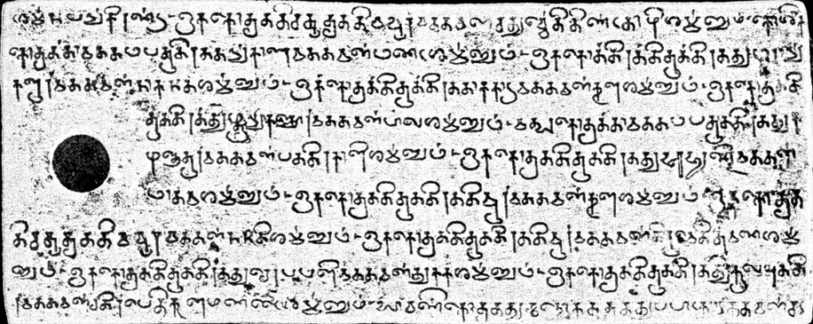 Wie in Tamil-Inschriften üblich stehen hier die stimmlosen Verschlußlaute auch für stimmhafte, sowie ca für palatales śa. An wenigen Stellen wird der pu ± ± i (skt. virāma ) vergessen.